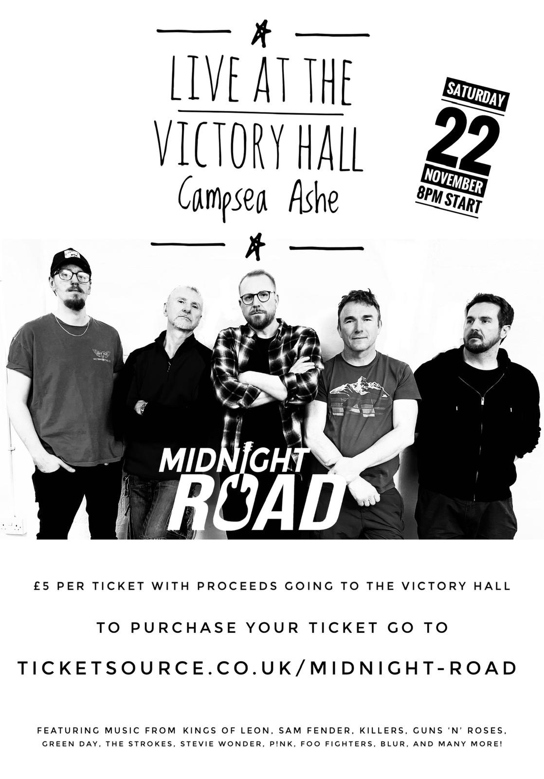 Midnight Road are appearing at the Village Hall on Saturday 22 November